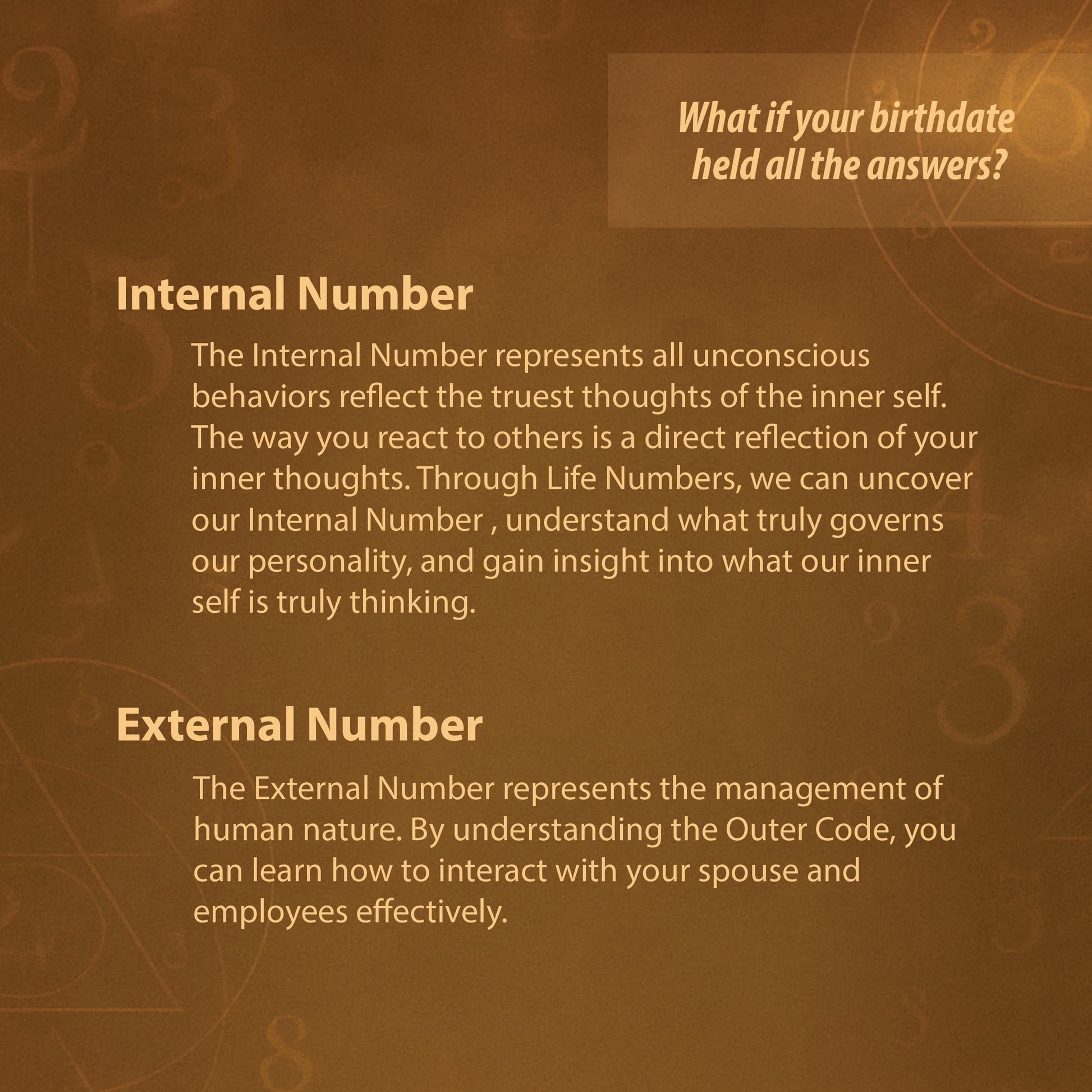 ✔️ External Number – Learn how others perceive you and how to improve your relationships